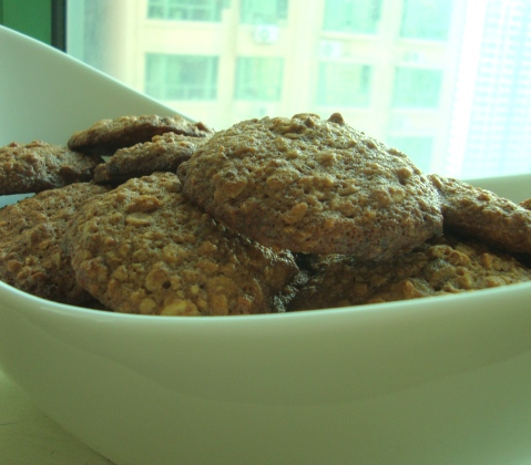 Oh, right, my cookies. They were meh: good but nothing special. A tad bit too sweet, even though I skimped on the sugar (as I always do), but delicious with milk. I omitted raisins because I used granola leftover from when we made parfaits that had dried apples and blueberries, but I wish I hadn’t because it’s not like the apples and blueberries were very noticeable in the granola. Also, I got lazy and combined it with another granola mix with bits of chocolate instead of keeping them separate.