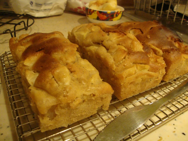 Food I can cook: Apple cake 13 June 201117 April 2013 JohannaNo Comments I made this last night: It looks like bread loaves because I only have mini-loaf pans. But it’s still pretty tasty. Why haven’t made this before? All it takes is apples, flour, sugar, eggs and butter.