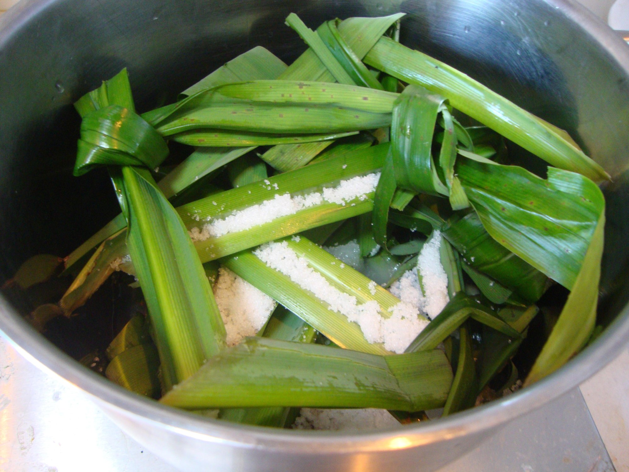 Naturally, I got to work right away. I read up on how to get the pandan extract from the leaves, and I even saw one recipe that called for pandan syrup. This is how: